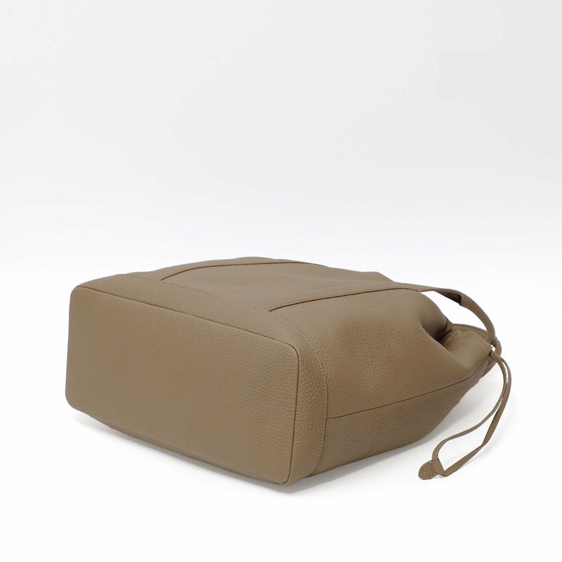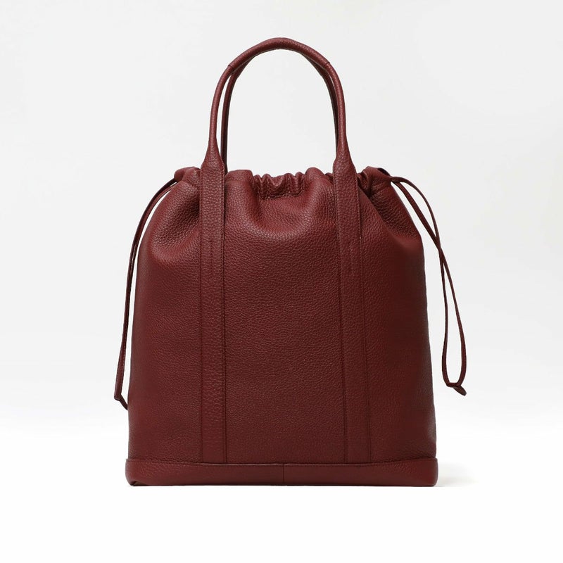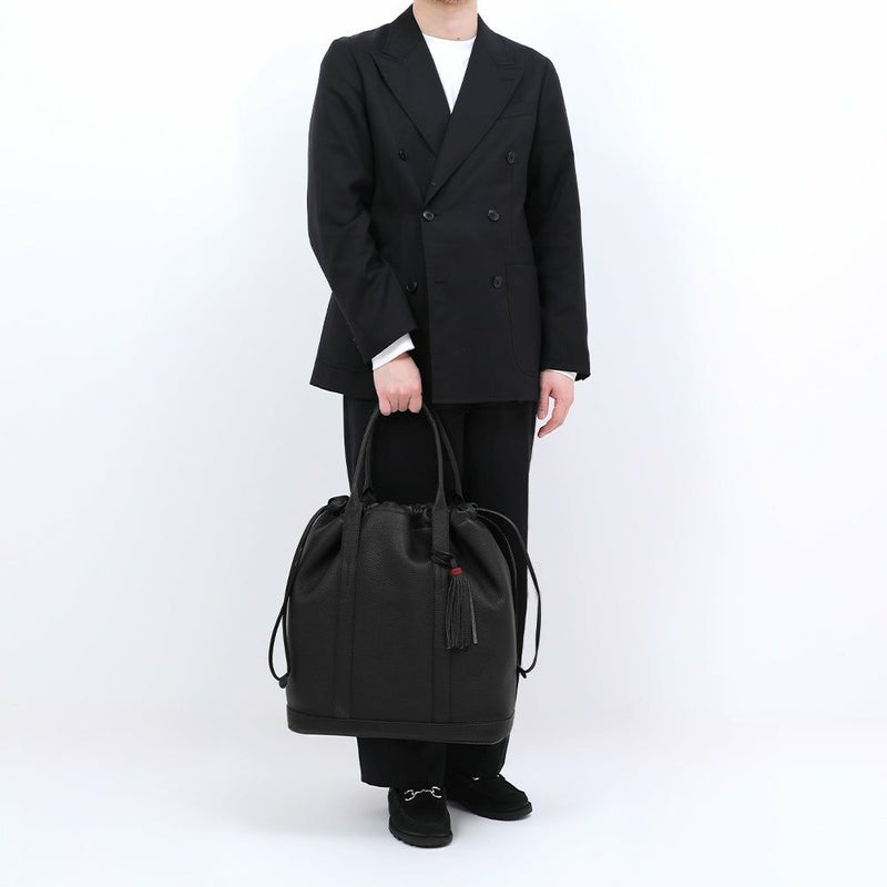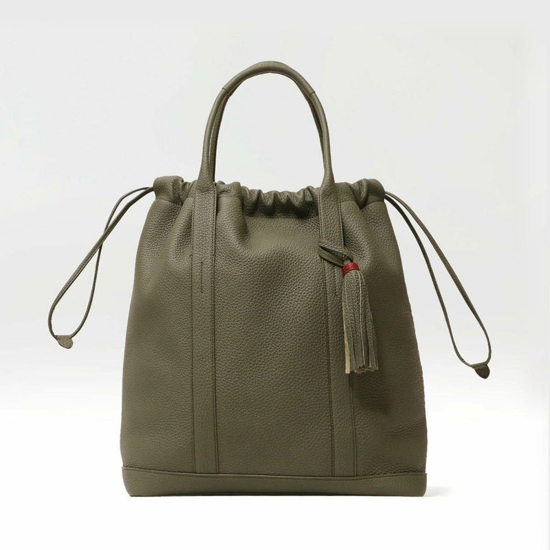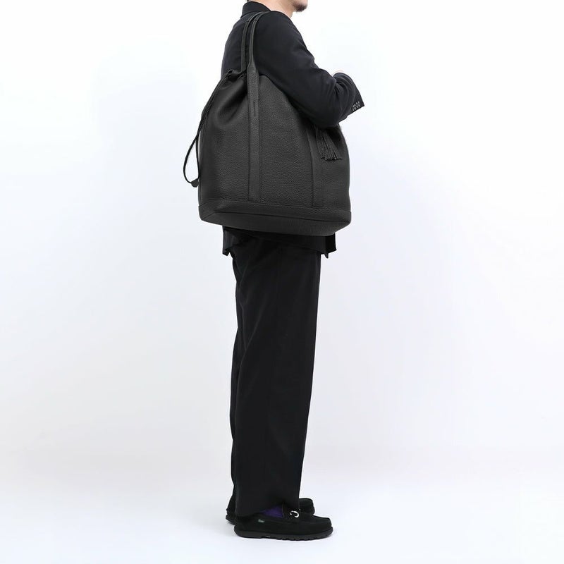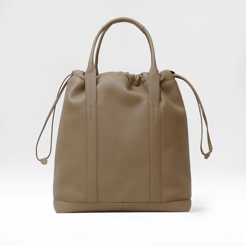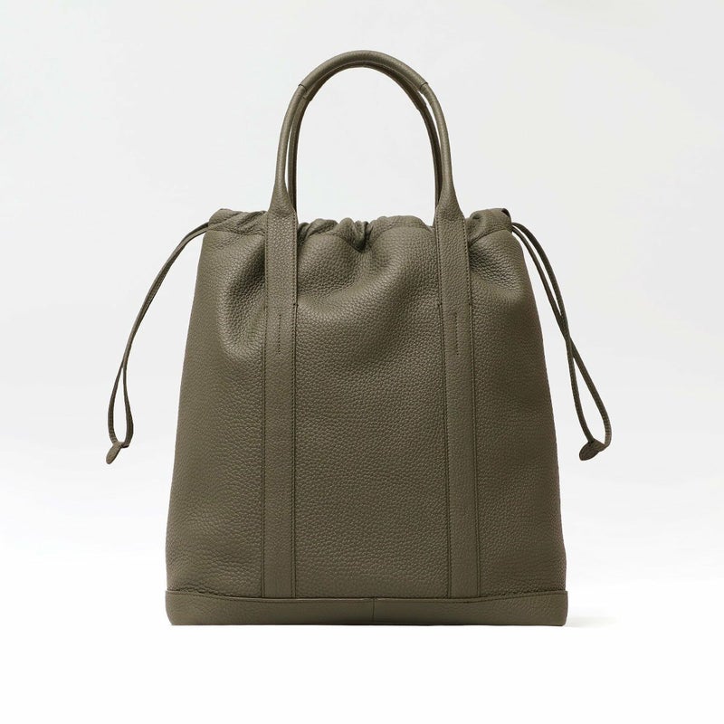 スタイリングと使いやすさを考慮した、ちょうど良いサイズ感のドローストリングバッグです。