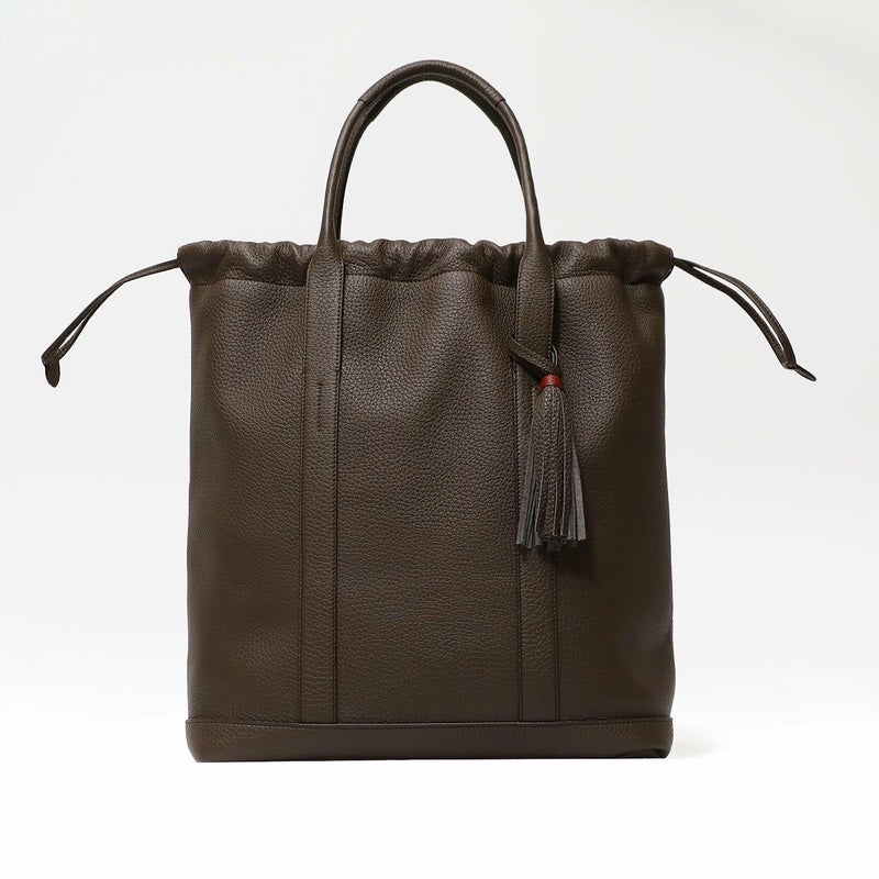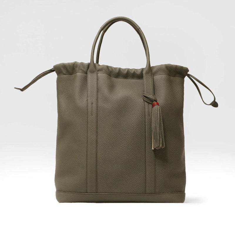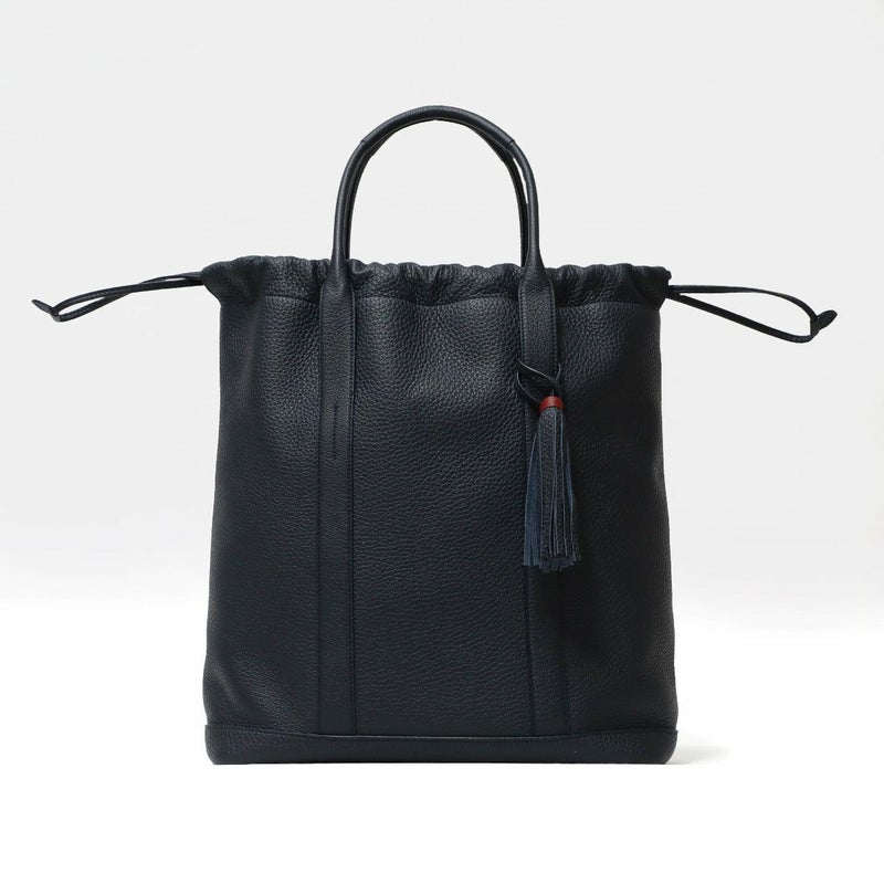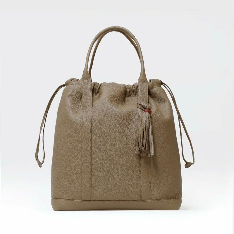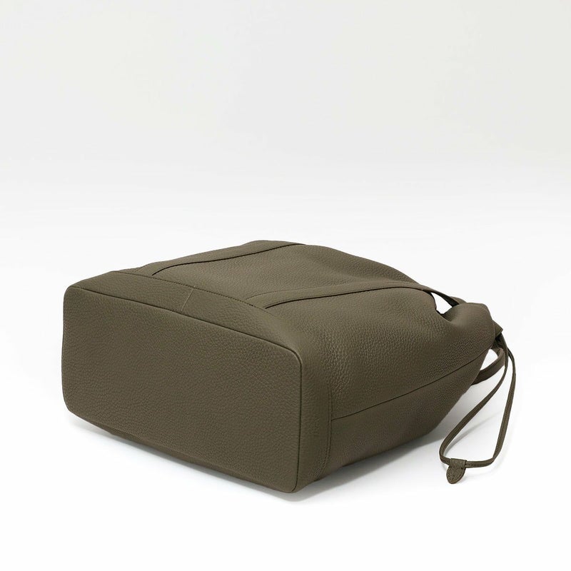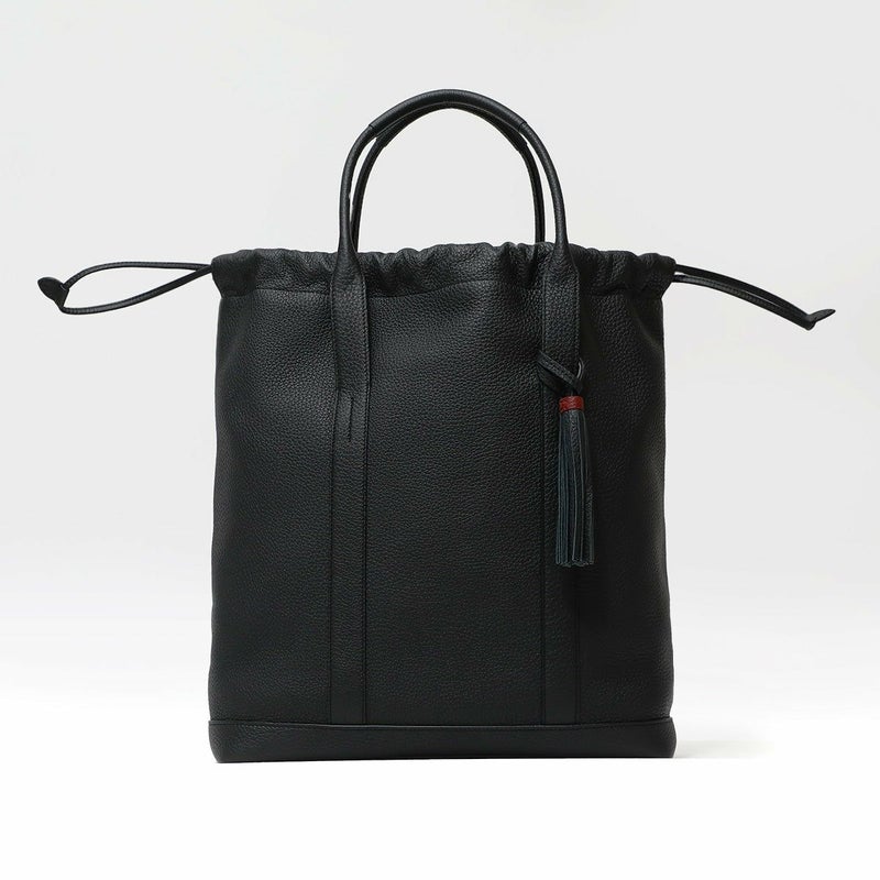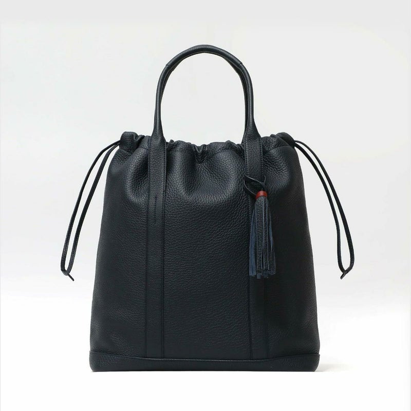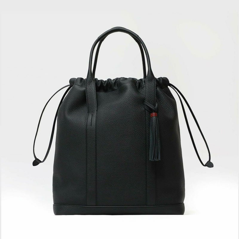 スタイリングと使いやすさを考慮した、ちょうど良いサイズ感のドローストリングバッグです。