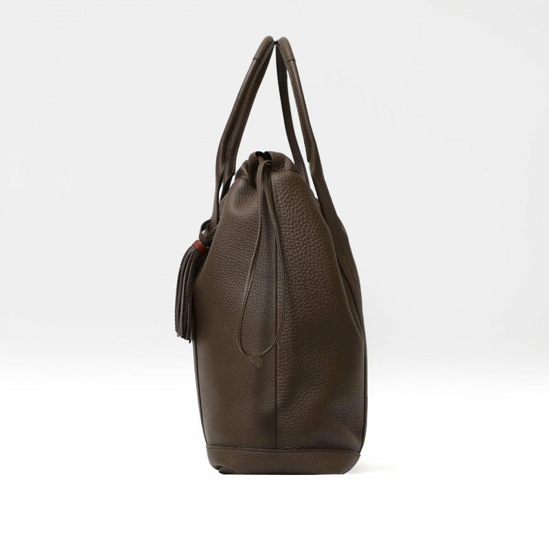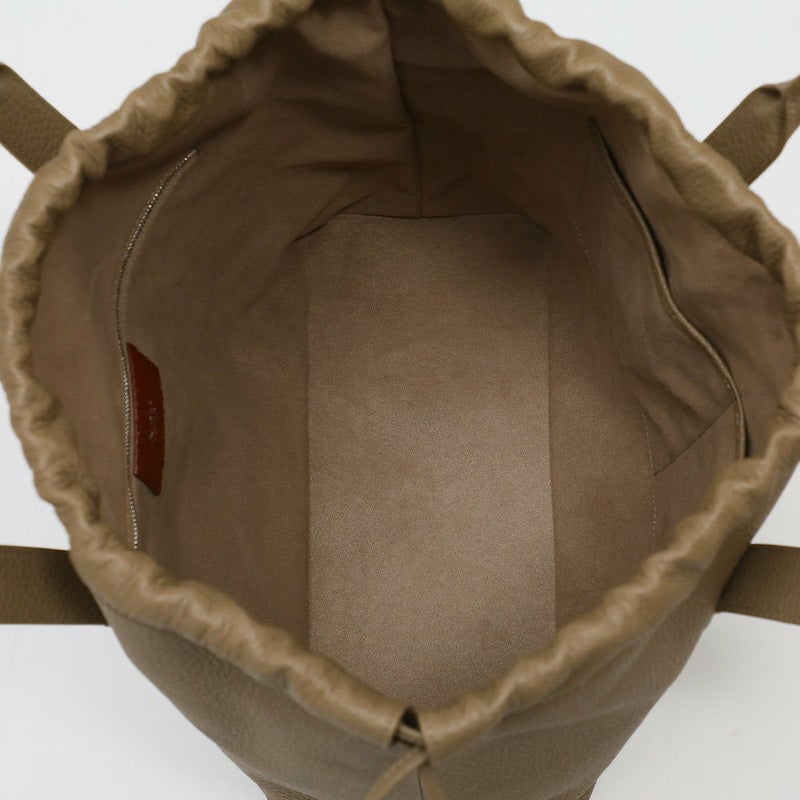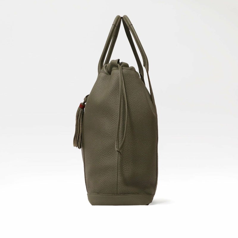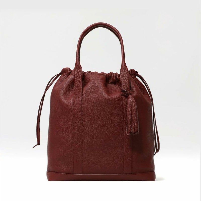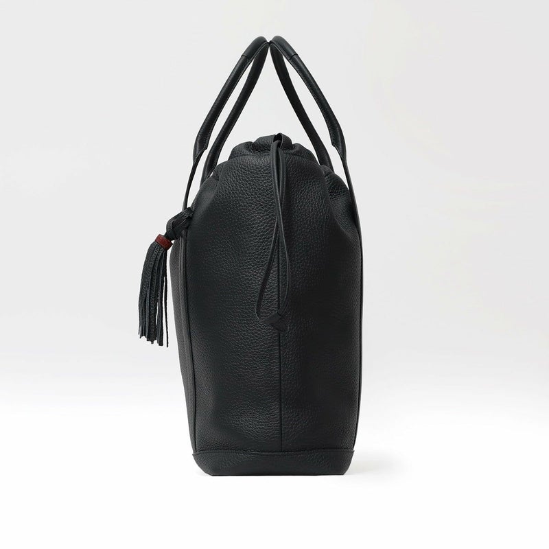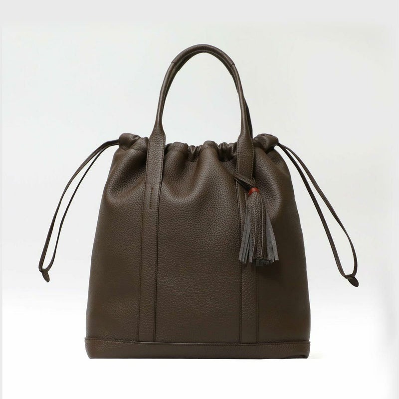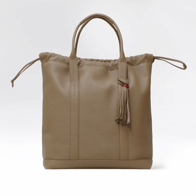 スタイリングと使いやすさを考慮した、ちょうど良いサイズ感のドローストリングバッグです。
