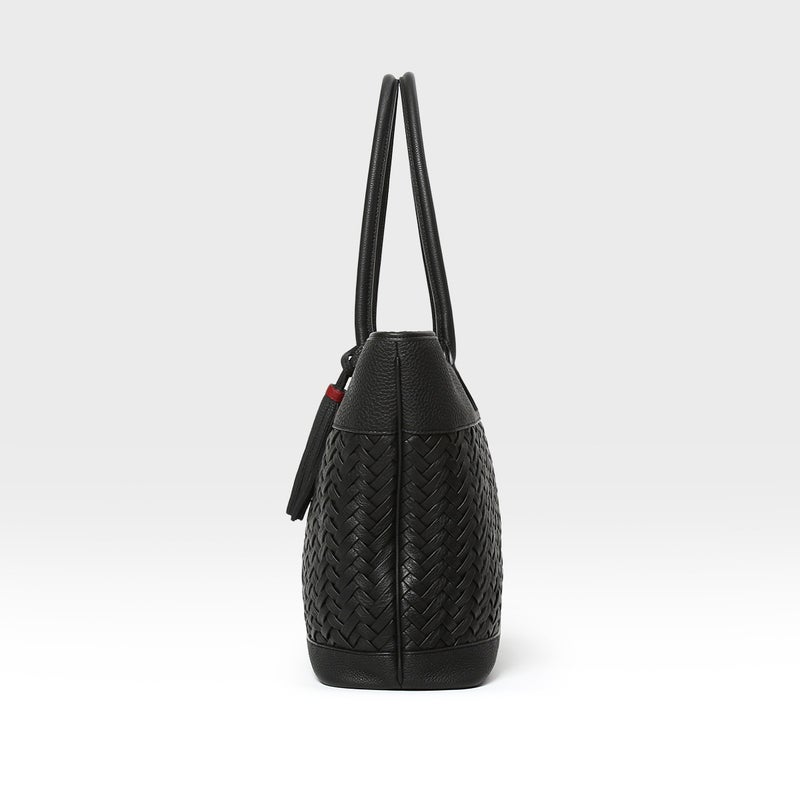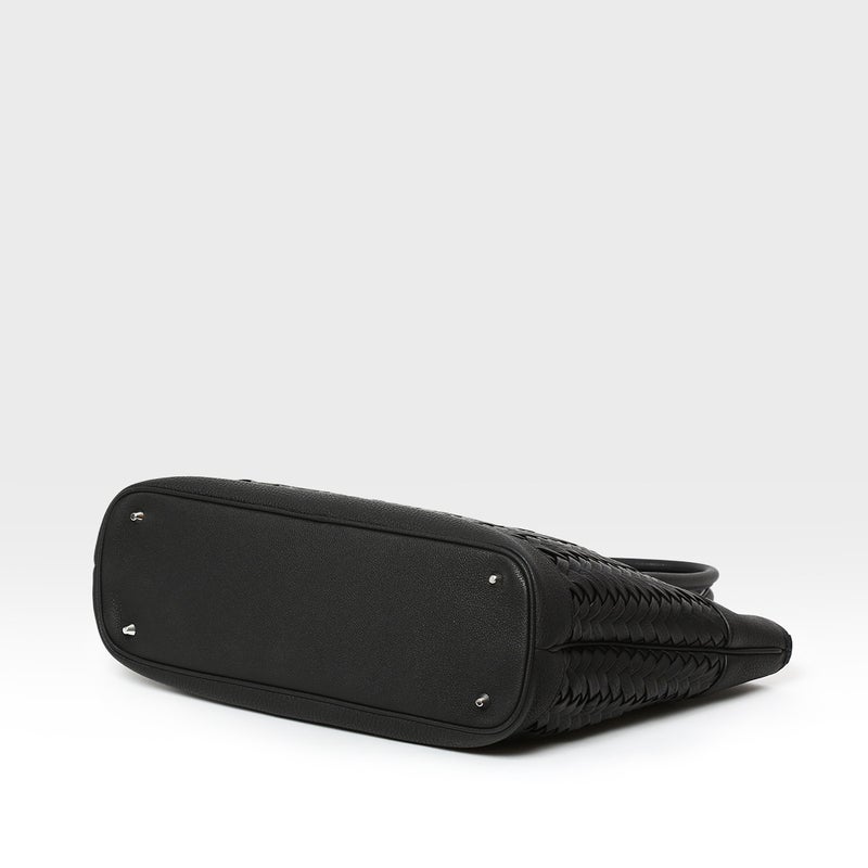 装いが完成した大人のために設計されたモデルです。丁寧に編み込まれたイントレチャートレザーが生み出す立体的な表情は、控えめでありながらも確かな存在感を放ちます。