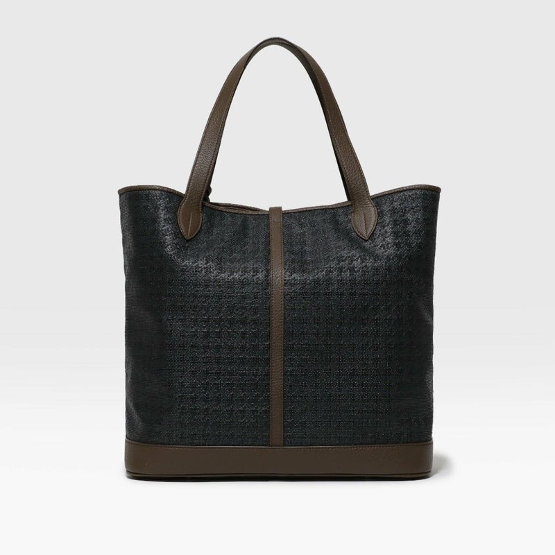 そのメッシュ素材に千鳥格子柄をエンボス加工することで織り目と柄が重なり、奥行のある表情に仕上がってます。