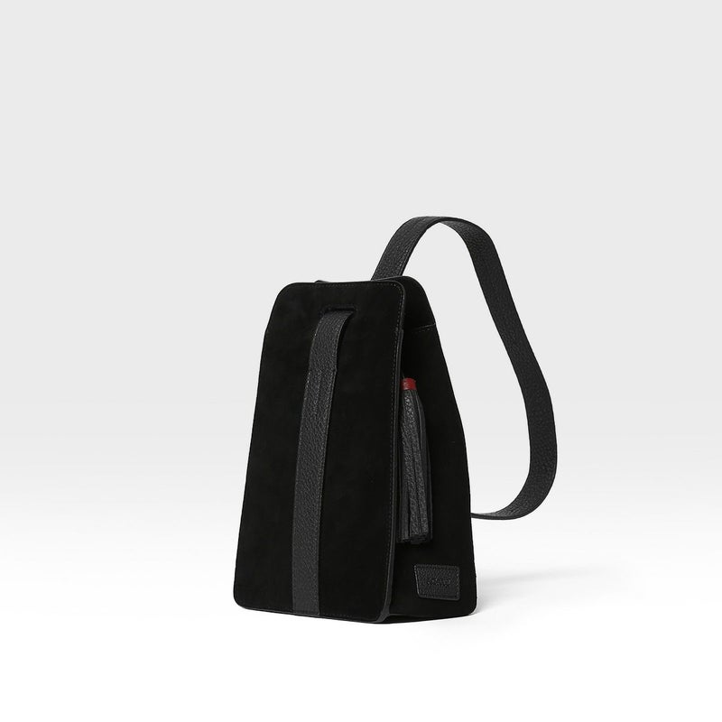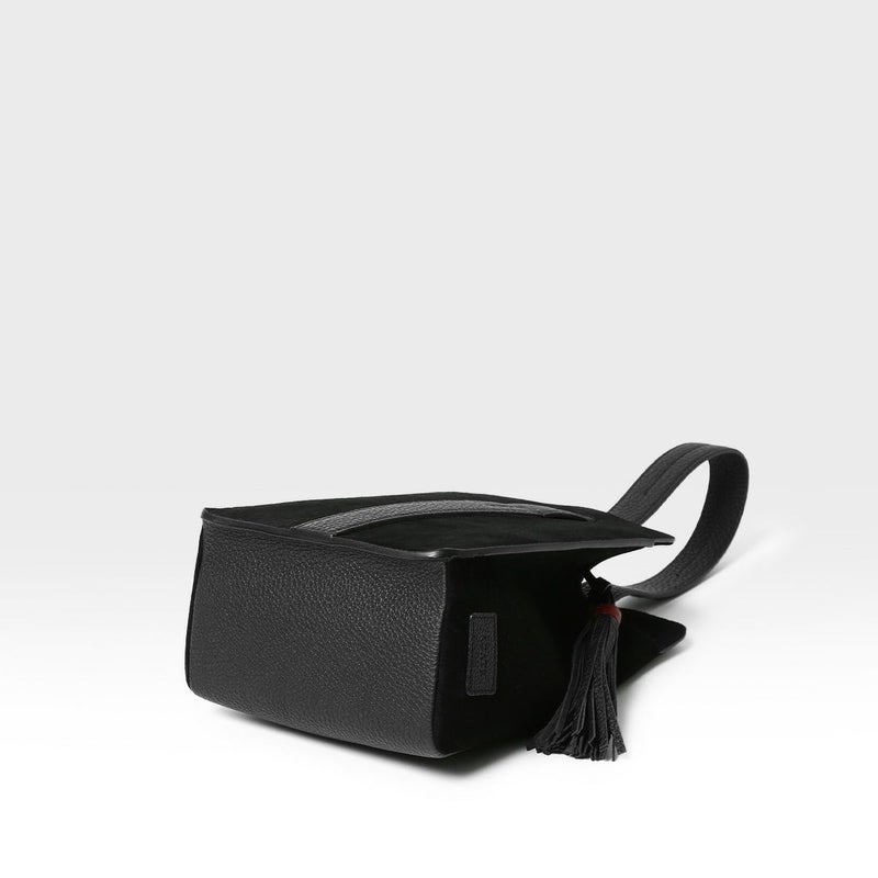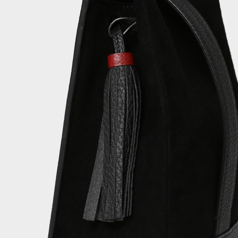 メイン素材にスエードレザー、ハンドル・ボトム・タッセルにシュリンクレザーを贅沢に使用。