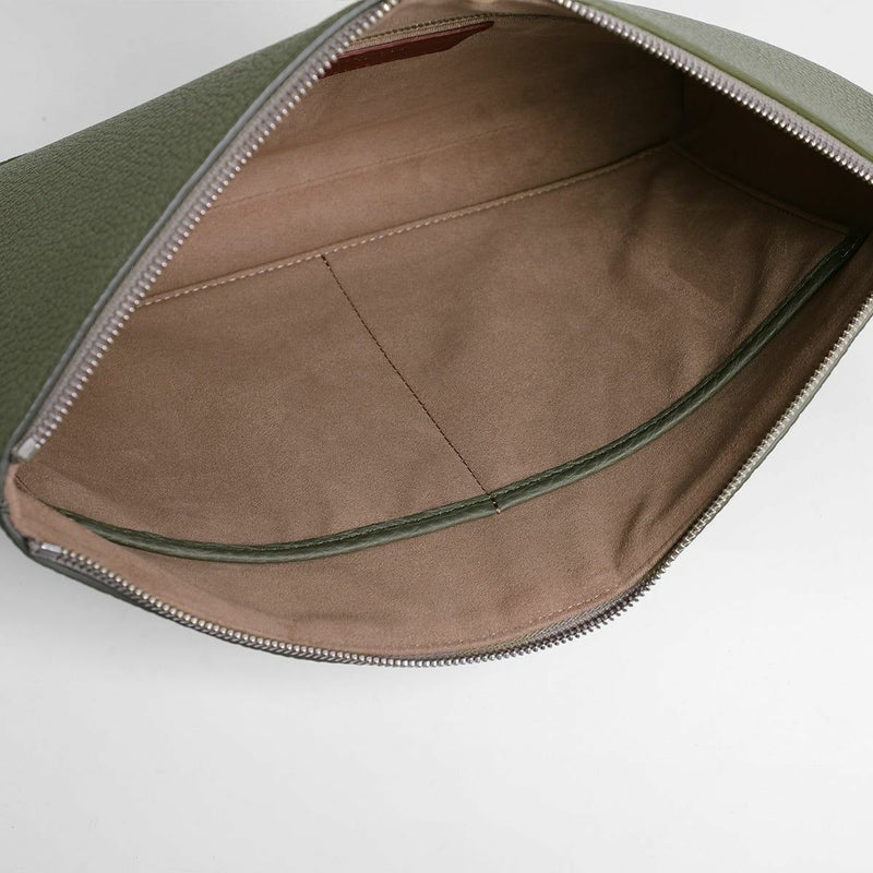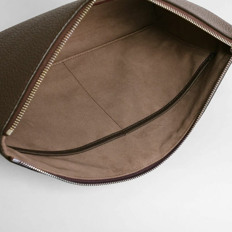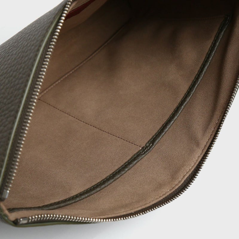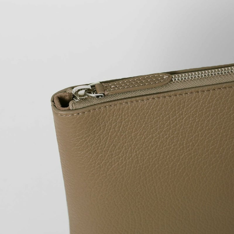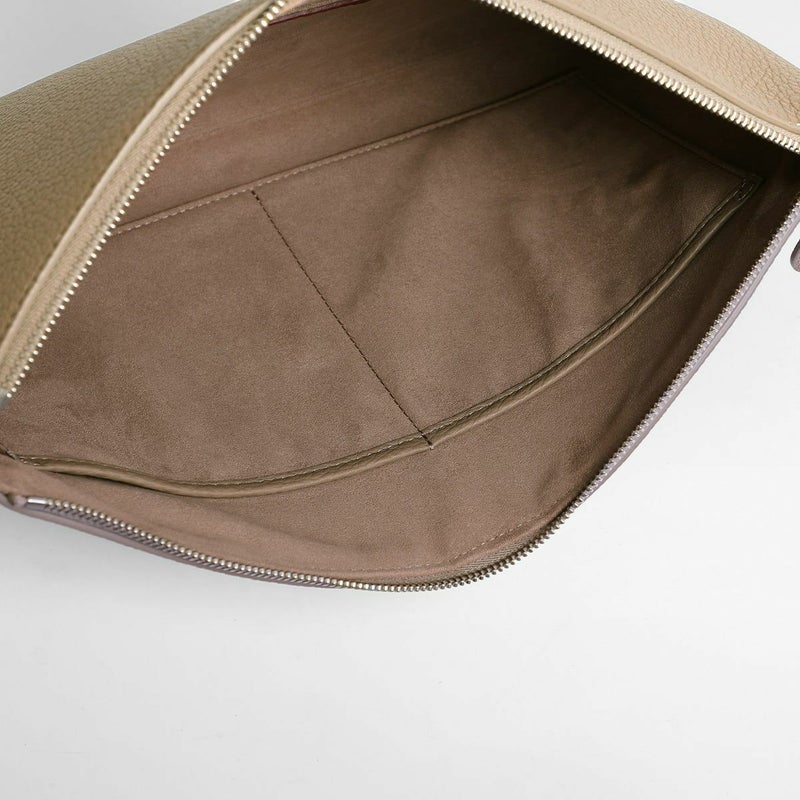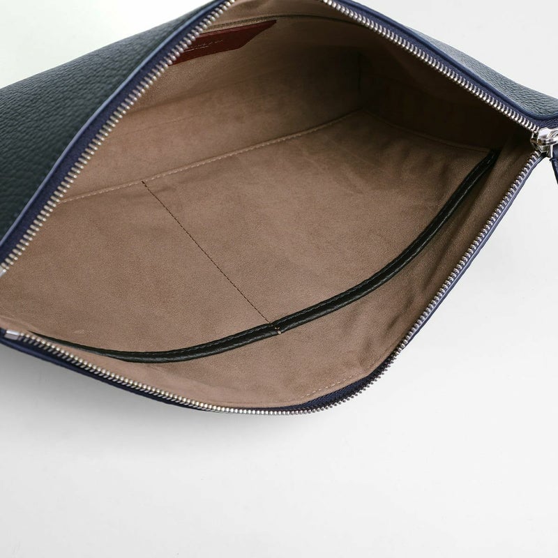 シュリンクレザーを用いたポーチは、バッグ・イン・バッグとしてクラッチバッグとしても活用できる汎用性の高さが魅力です。