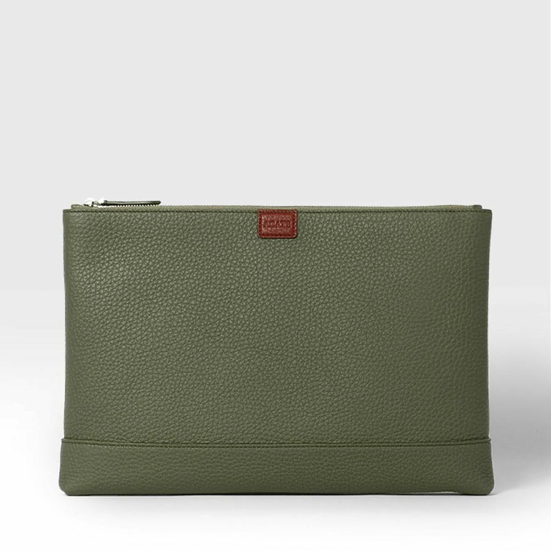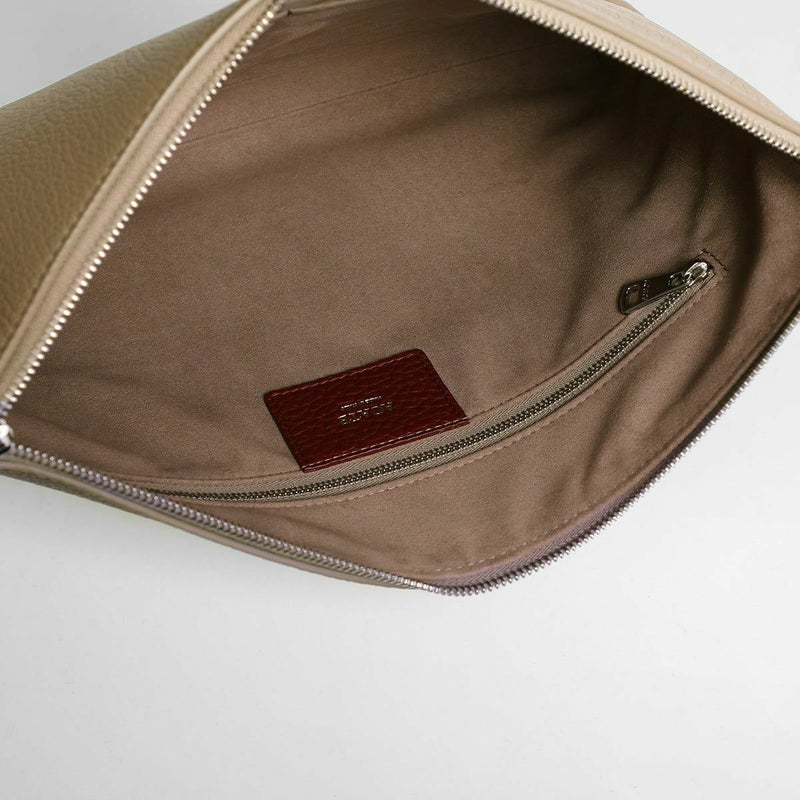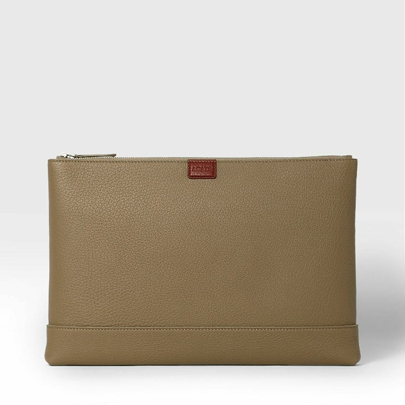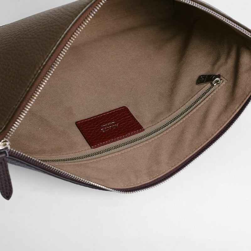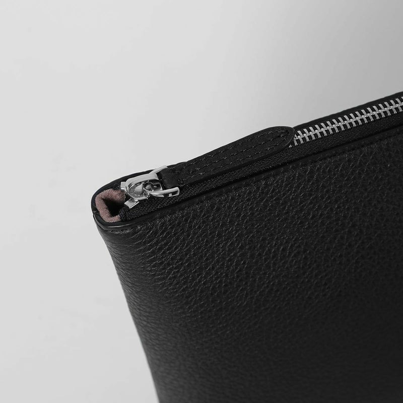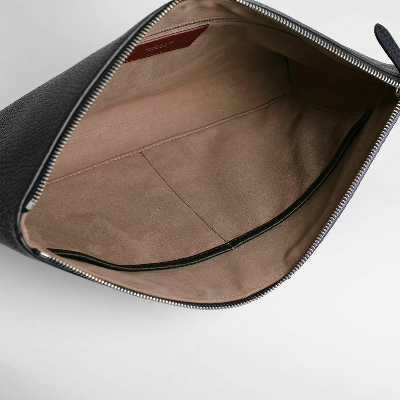 シュリンクレザーを用いたポーチは、バッグ・イン・バッグとしてクラッチバッグとしても活用できる汎用性の高さが魅力です。