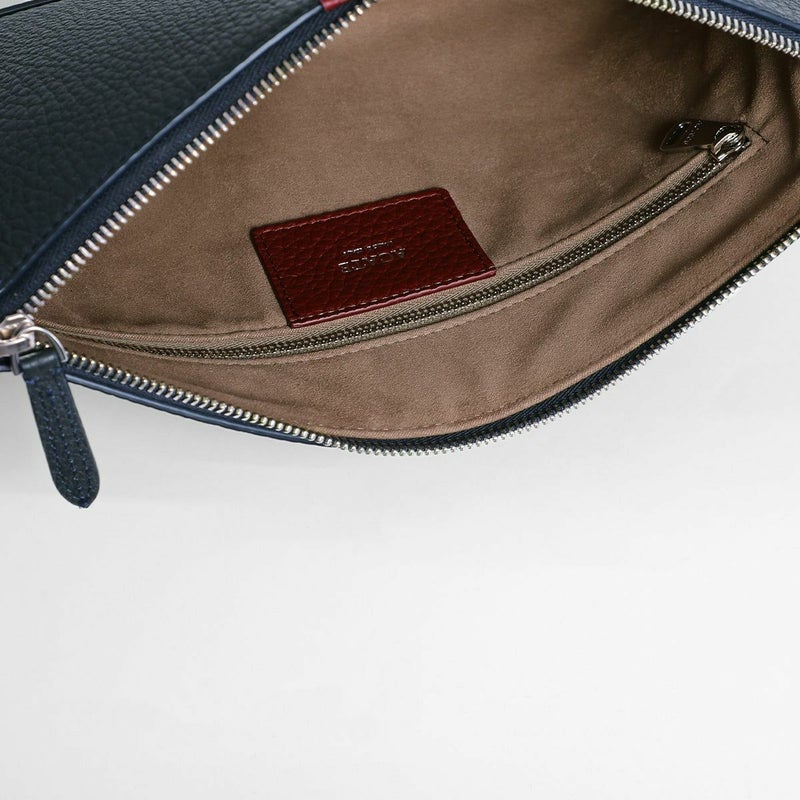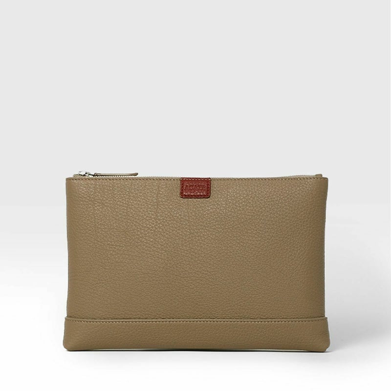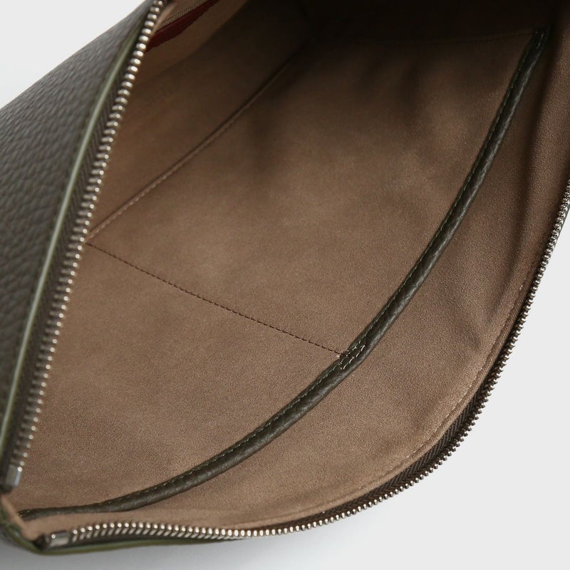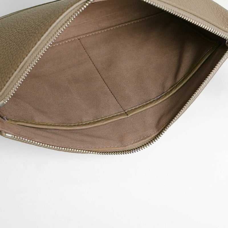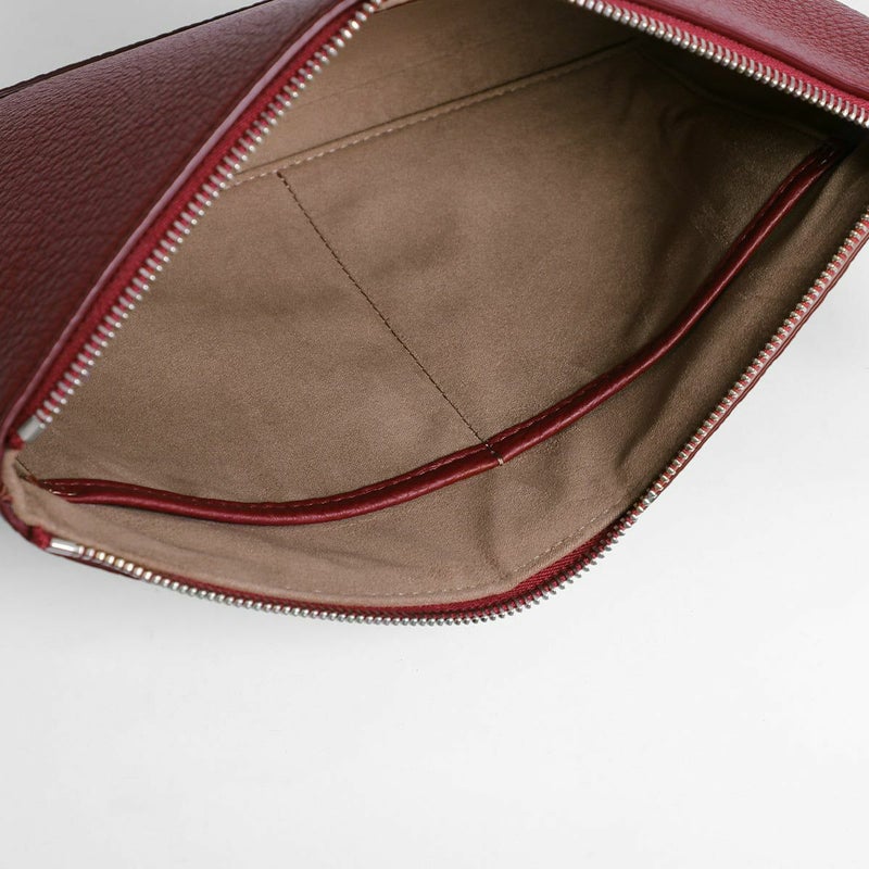 シュリンクレザーを用いたポーチは、バッグ・イン・バッグとしてクラッチバッグとしても活用できる汎用性の高さが魅力です。