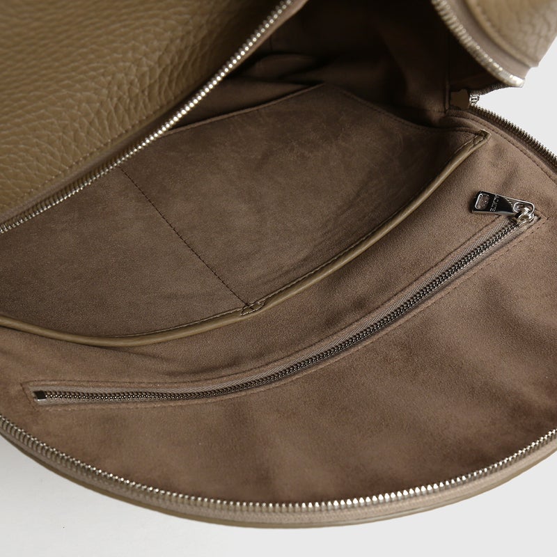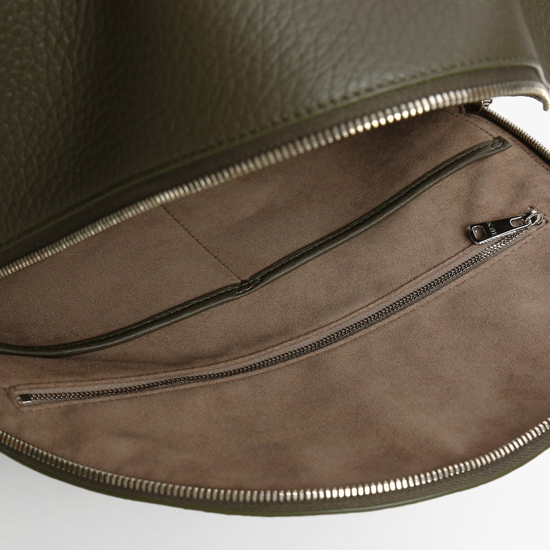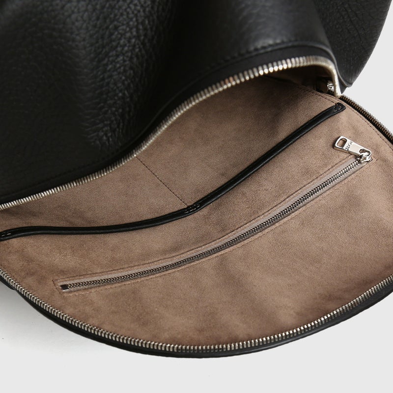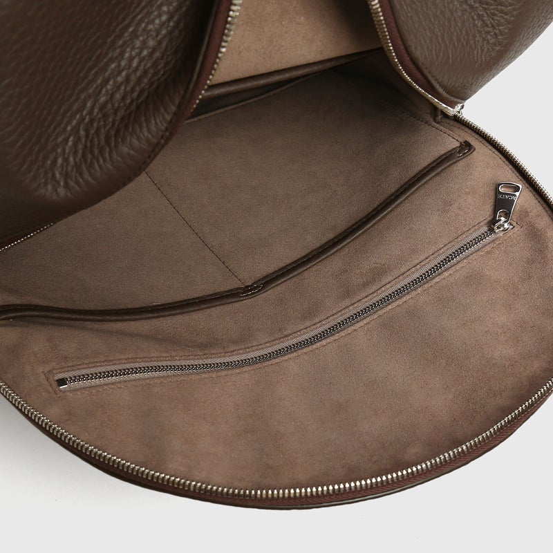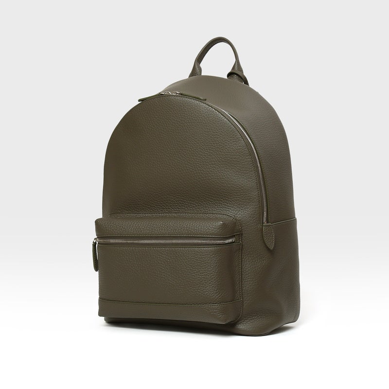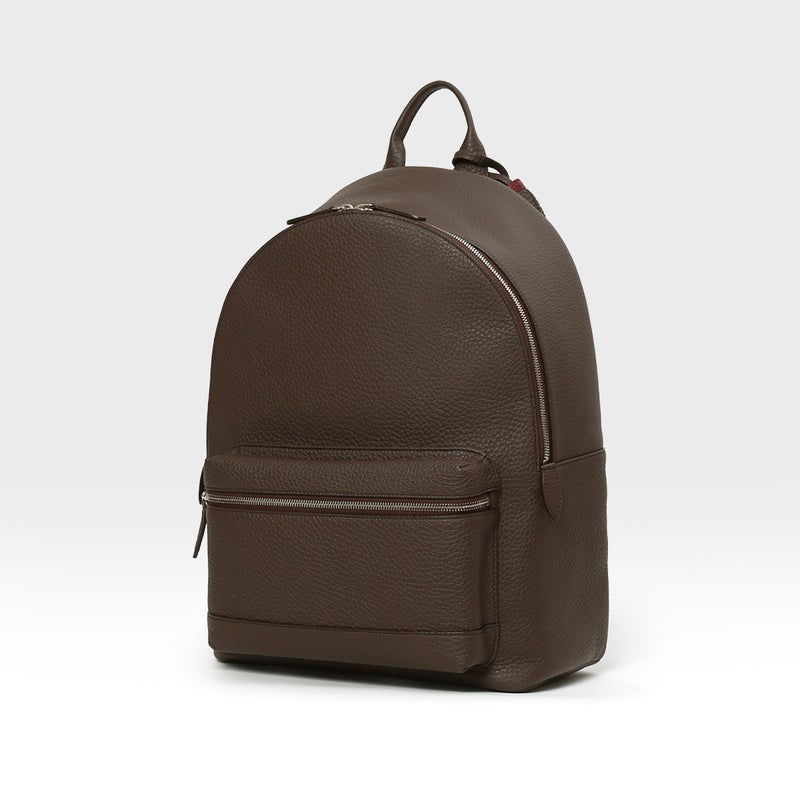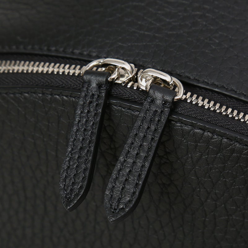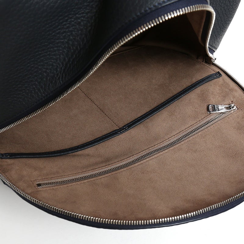 端正で丸みを抑えたフォルムは、背負った際にもすっきりとした印象を保ち、ジャケットスタイルにも違和感なく馴染みます。容量に余裕を持たせながらも、外観はあくまでミニマル。上質なレザーと丁寧な仕立てにより、カジュアルなアイテムでありながら、品格ある佇まいを実現しました。