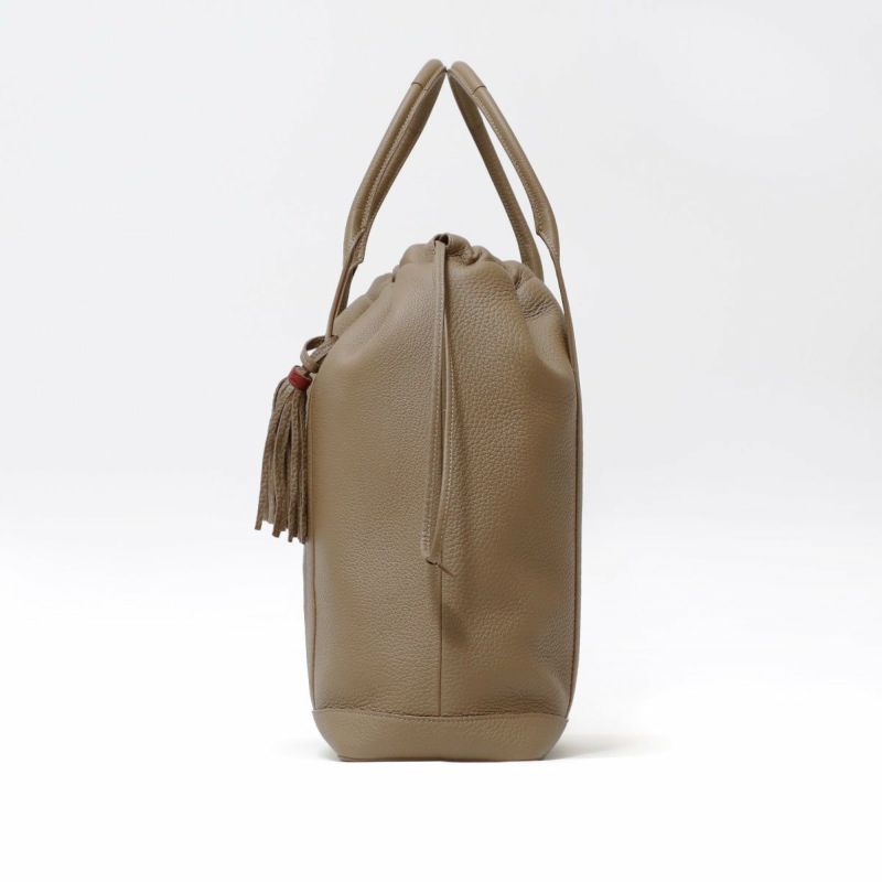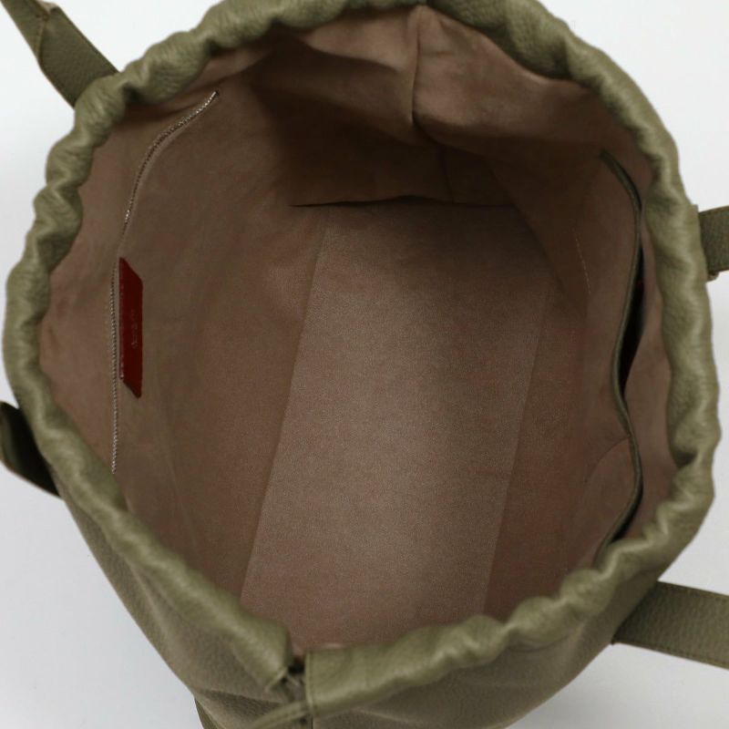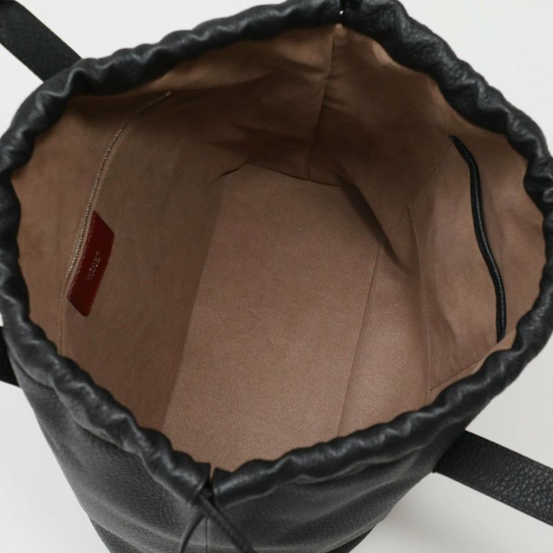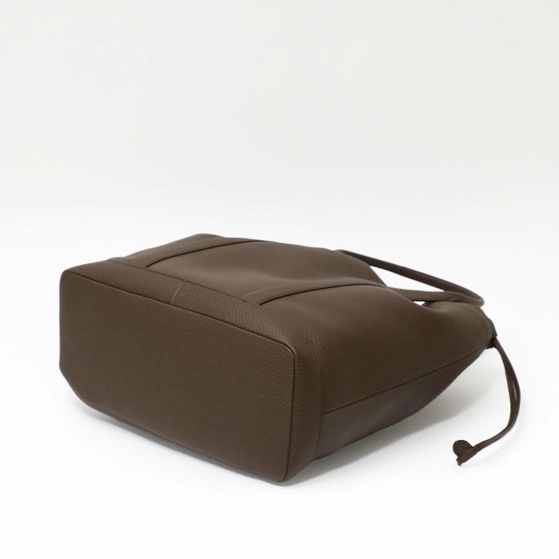 スタイリングと使いやすさを考慮した、ちょうど良いサイズ感のドローストリングバッグです。
