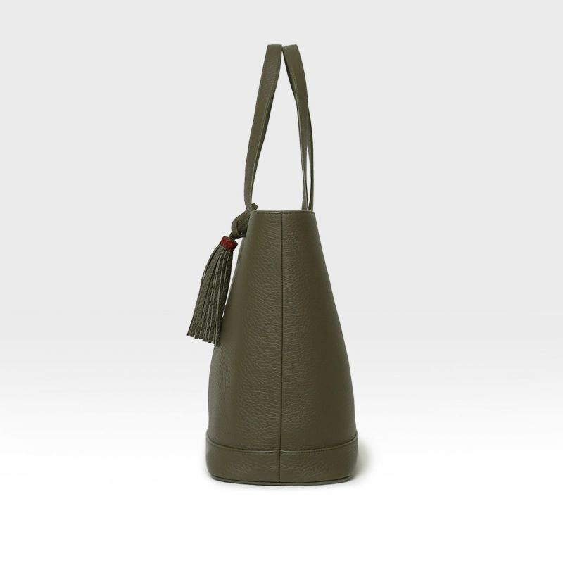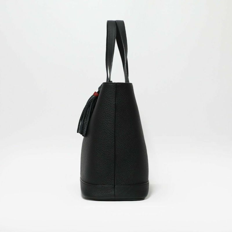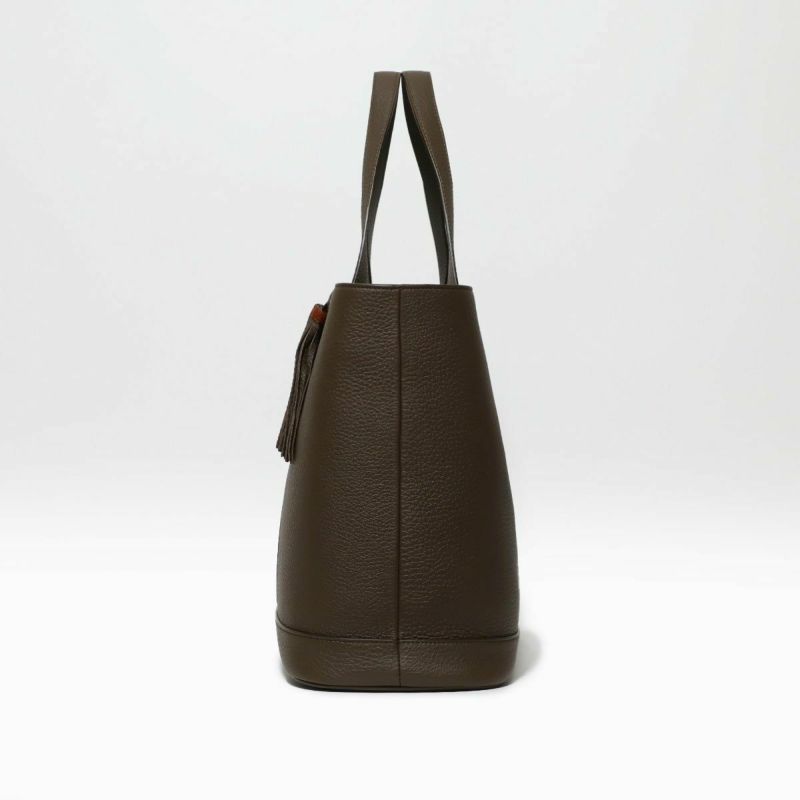 開口部にストラップを取り付け、ブランドアイコンのひとつである取り外し可能なタッセルを付属。