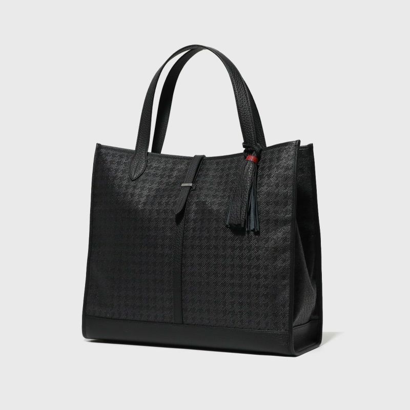 そのメッシュ素材に千鳥格子柄をエンボス加工することで織り目と柄が重なり、奥行のある表情に仕上がってます。