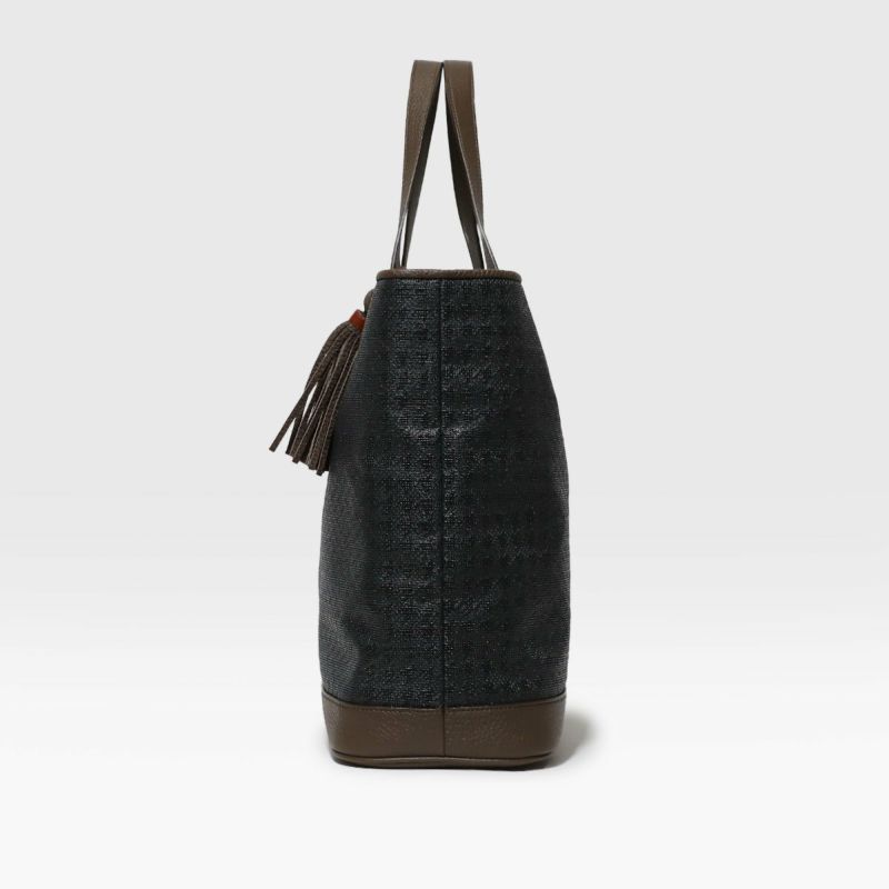 そのメッシュ素材に千鳥格子柄をエンボス加工することで織り目と柄が重なり、奥行のある表情に仕上がってます。