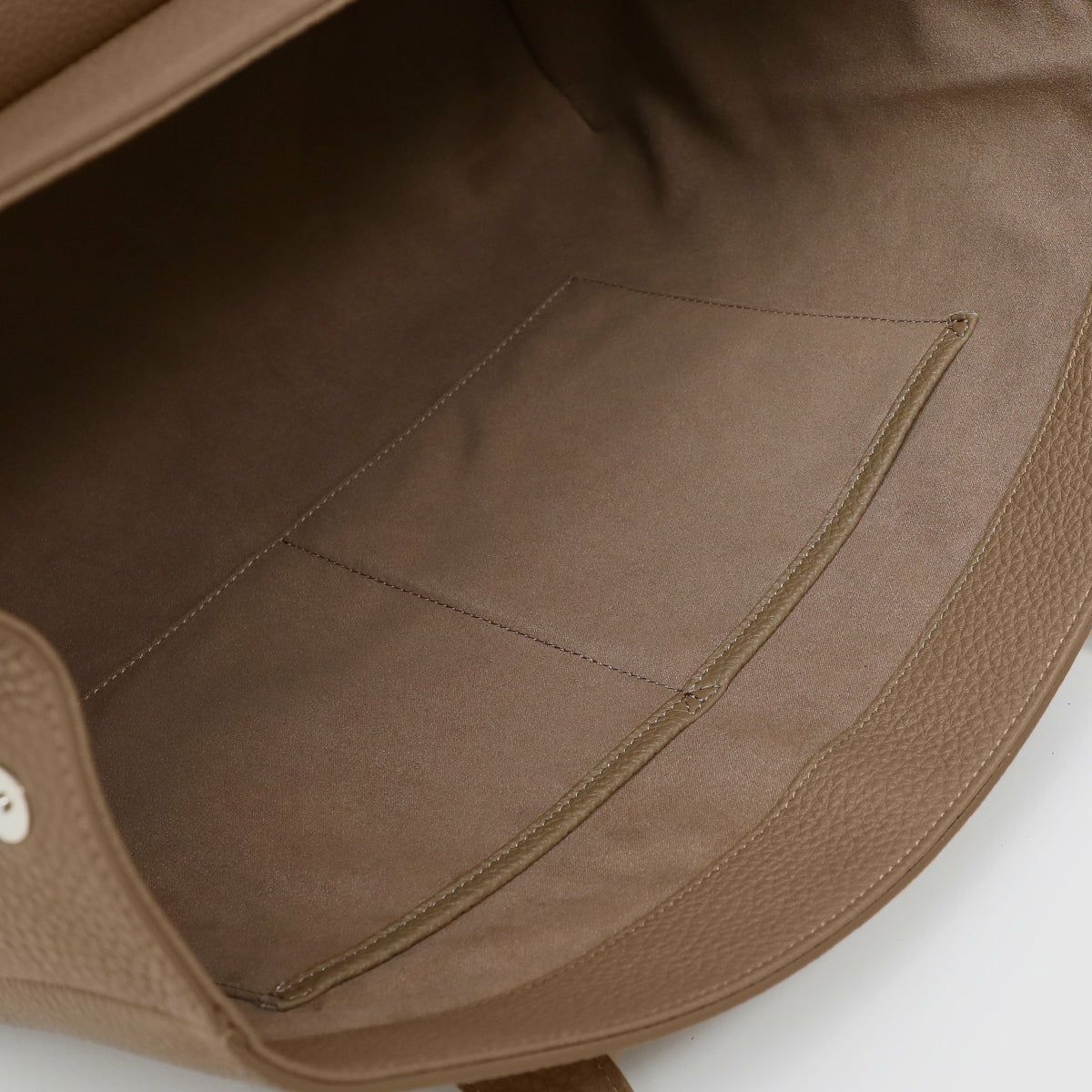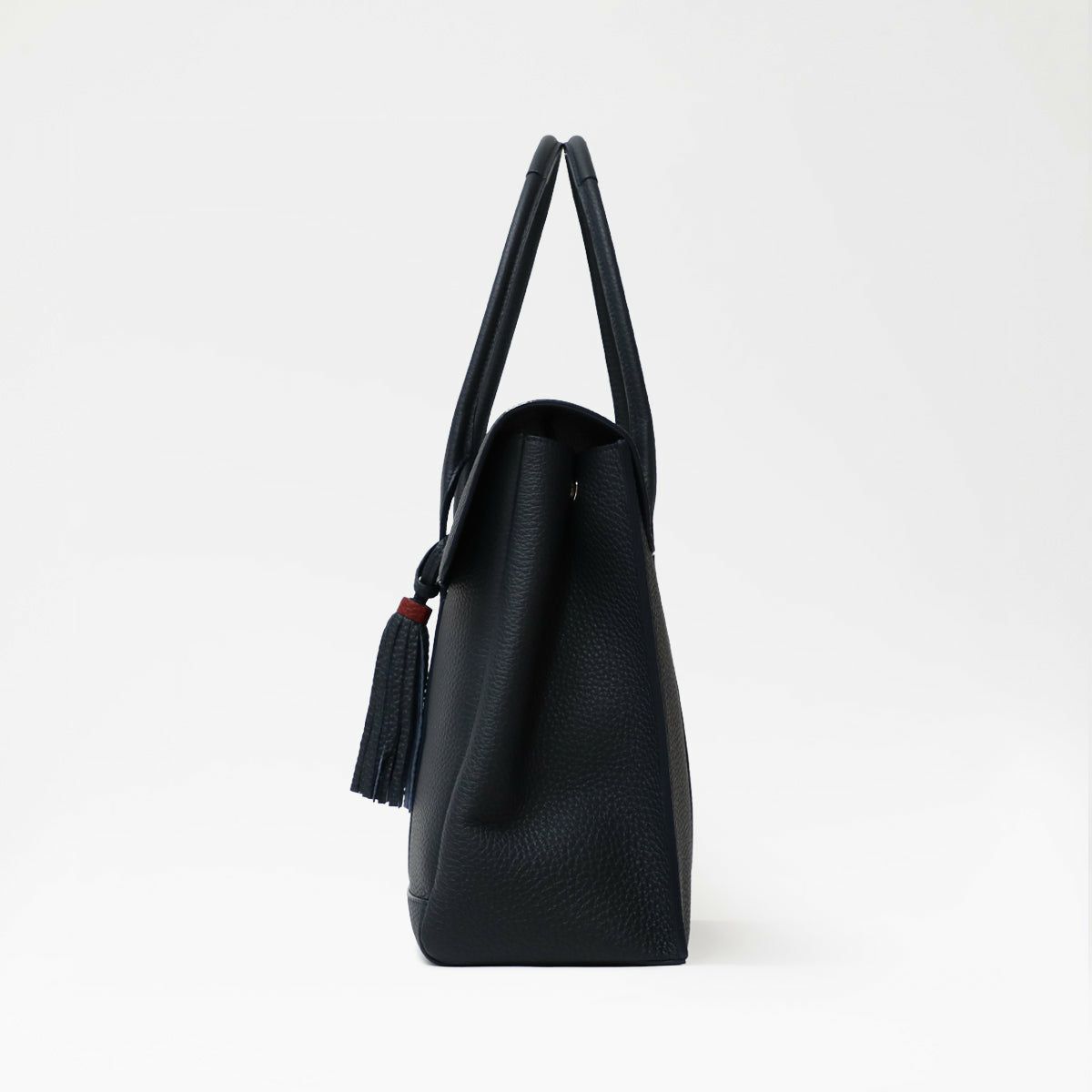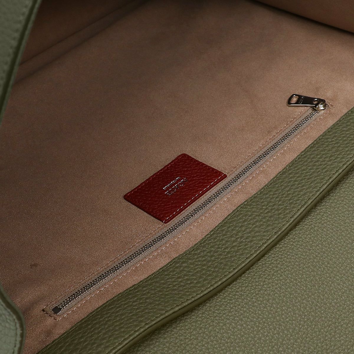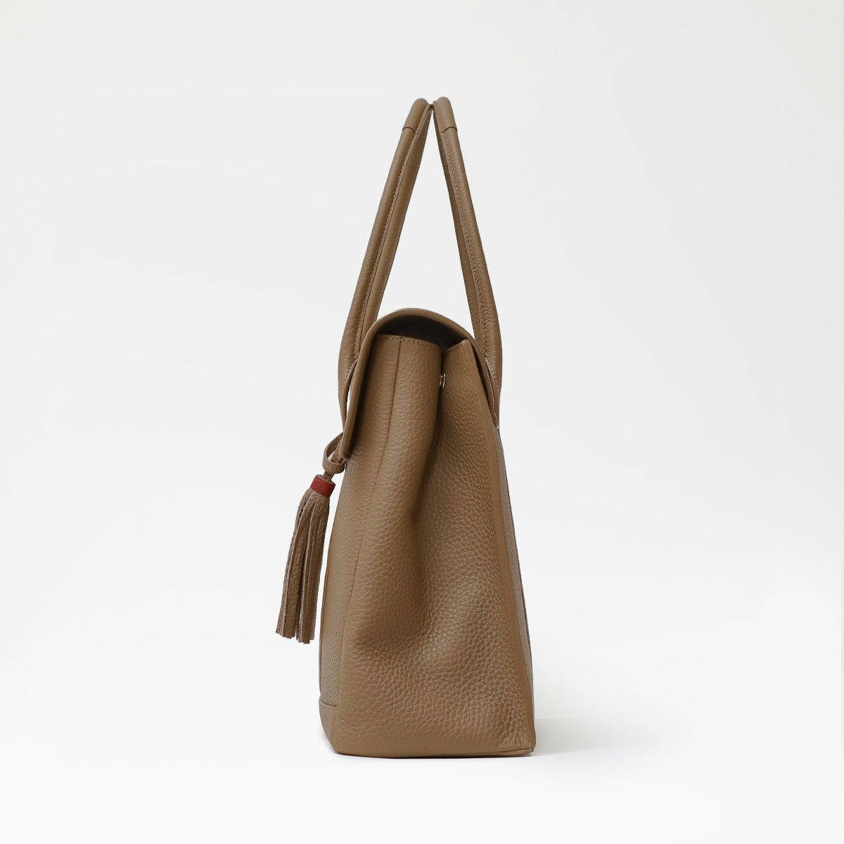 "MESCOLARE(メスコラーレ)"はイタリア語で"混ぜる"を意味するモデル。 正面、側面、背面、どこから見ても別のもののように見える、特徴的なデザインのバッグです。