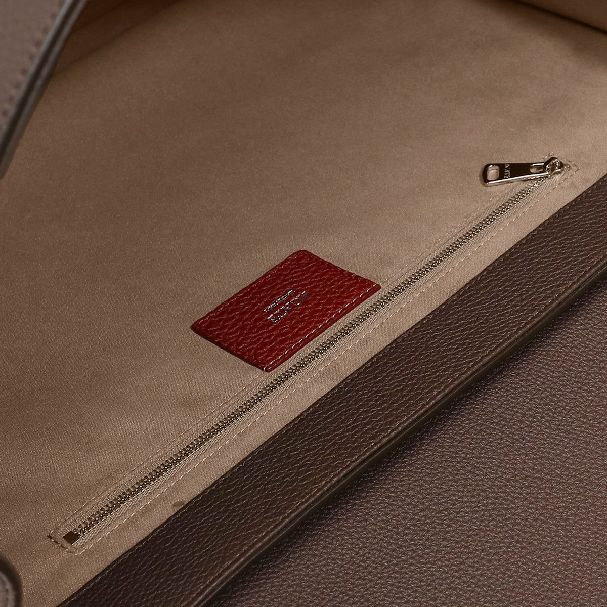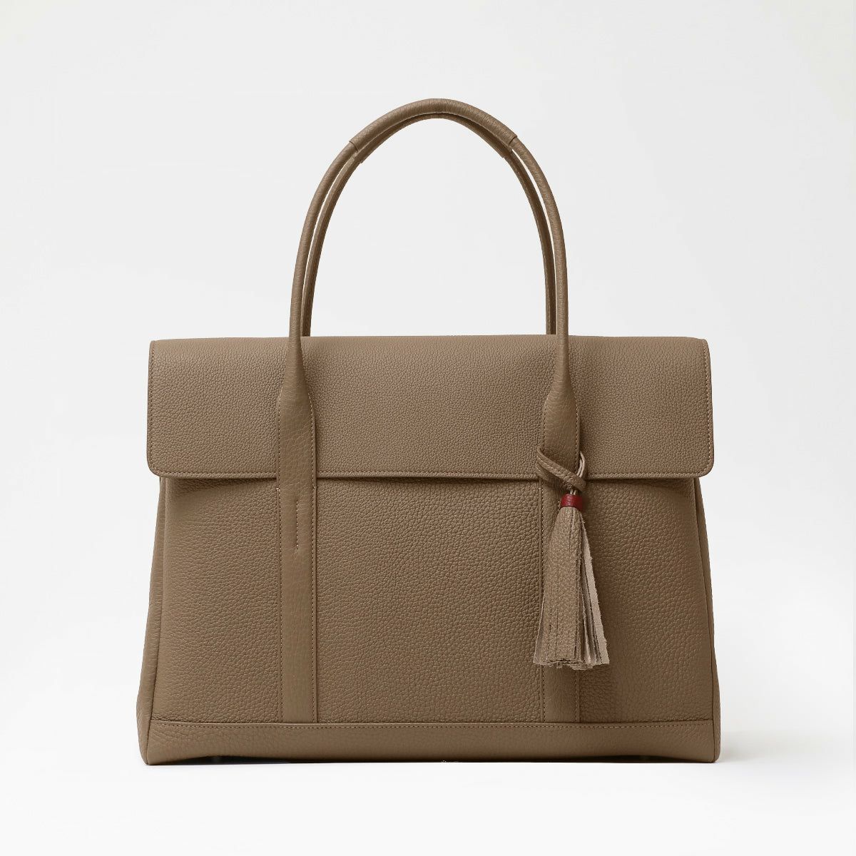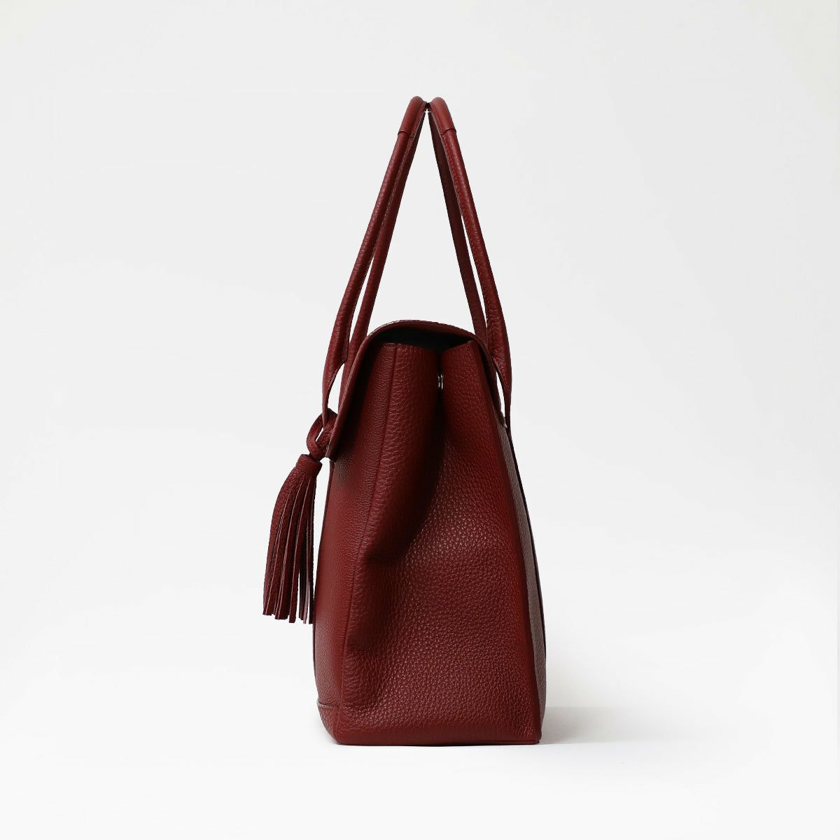 "MESCOLARE(メスコラーレ)"はイタリア語で"混ぜる"を意味するモデル。 正面、側面、背面、どこから見ても別のもののように見える、特徴的なデザインのバッグです。
