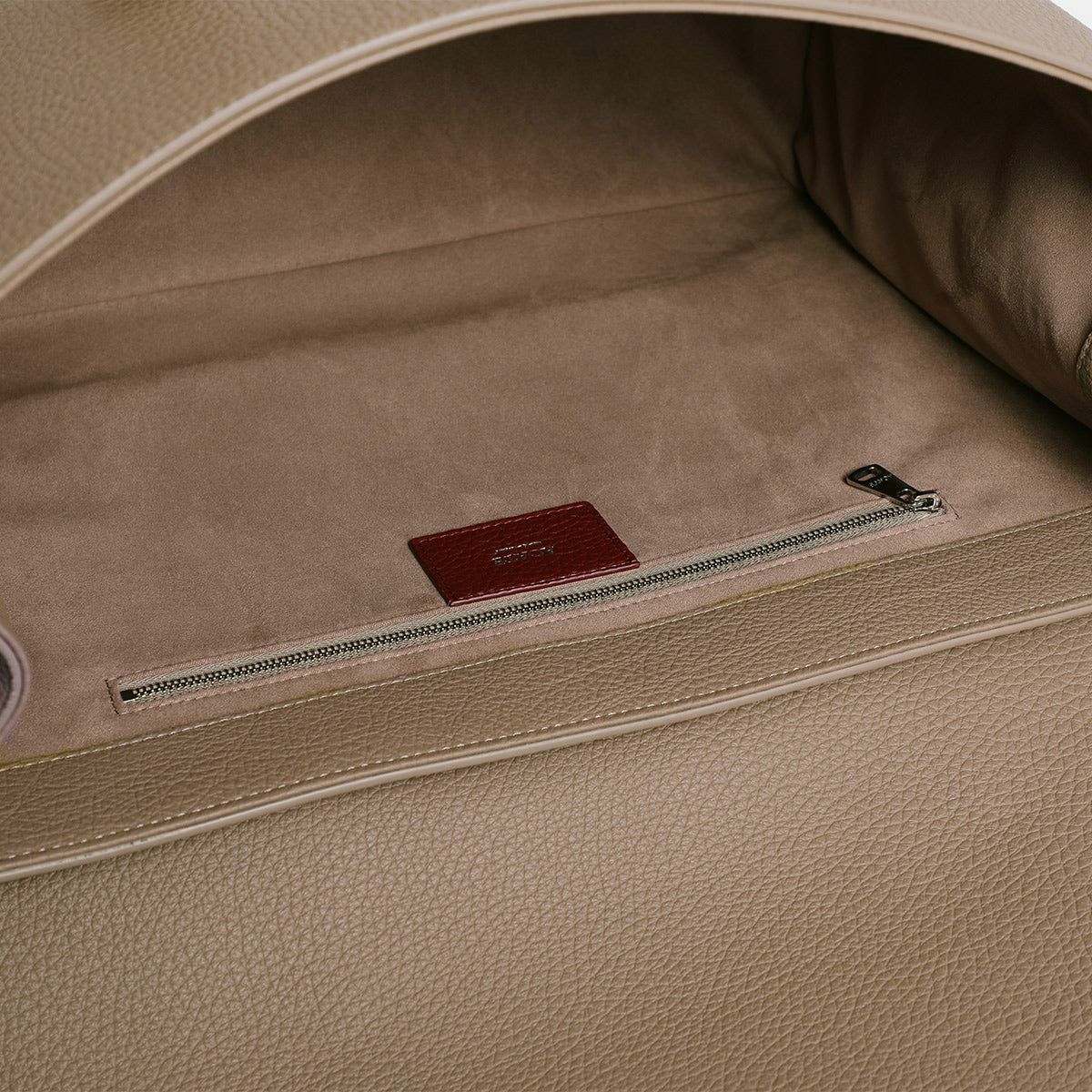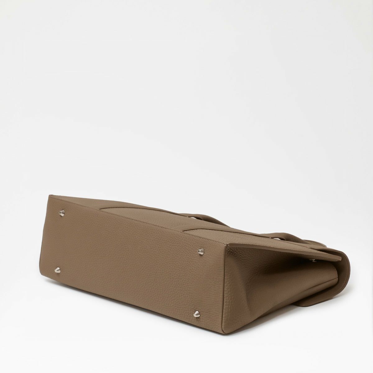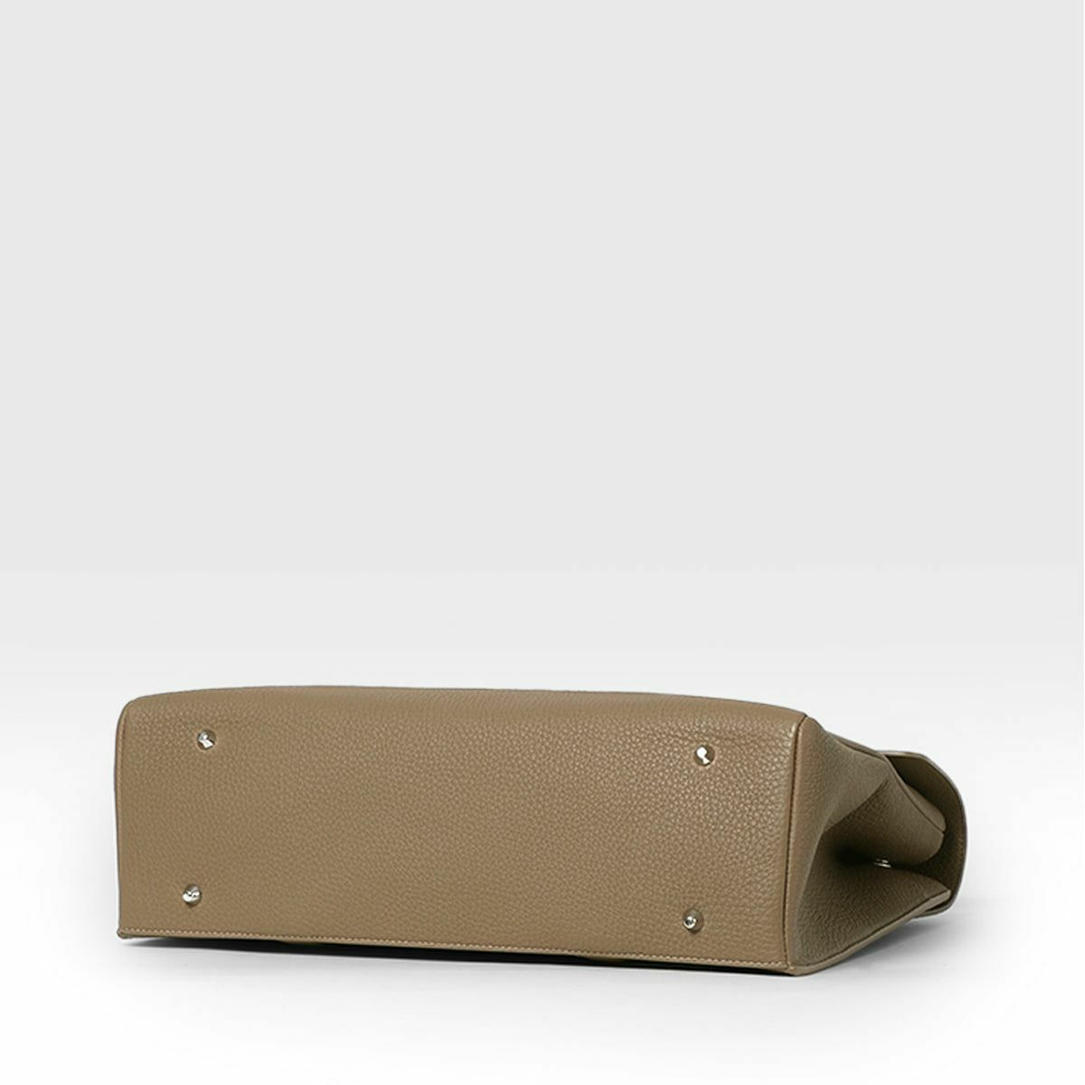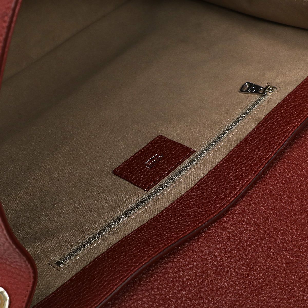 "MESCOLARE(メスコラーレ)"はイタリア語で"混ぜる"を意味するモデル。 正面、側面、背面、どこから見ても別のもののように見える、特徴的なデザインのバッグです。
