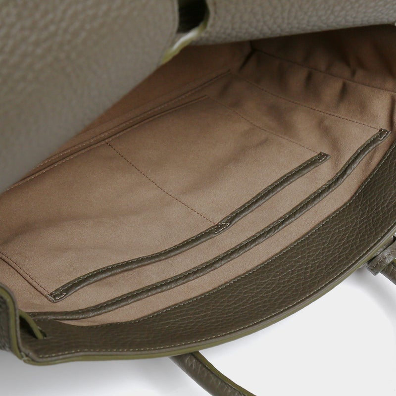 高品質で柔軟な素材のシュリンクレザーを使い、リュクスなムードに仕上げています。
