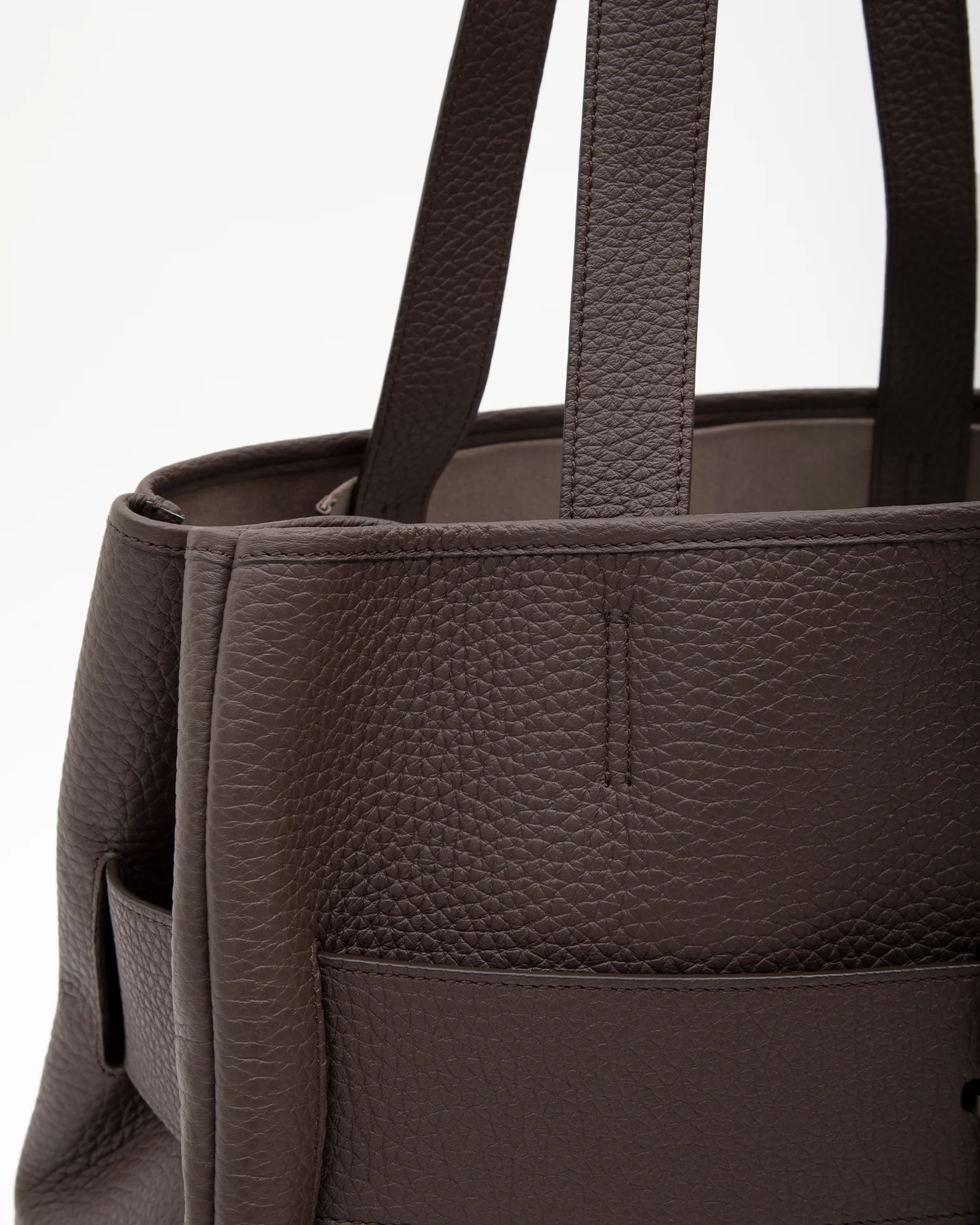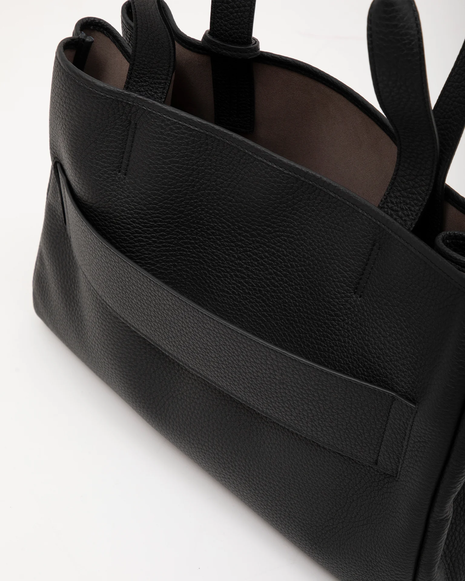 ハンドルはフラットな形状にすることでミニマルにしつつ、外付けでなくインナーに取り付けることでよりシンプルに。