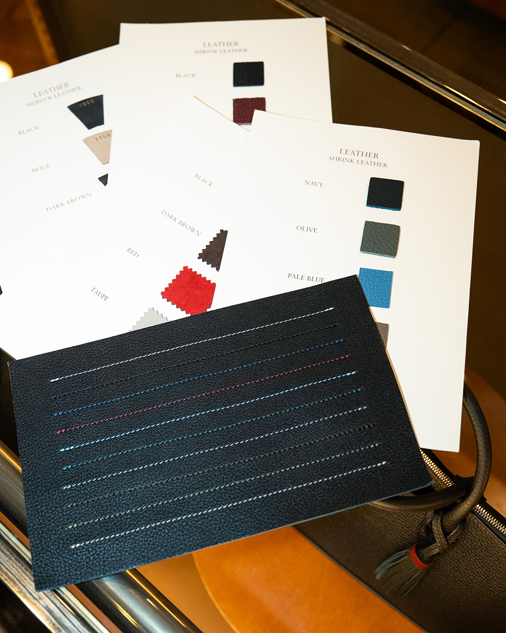 素材はシュリンクレザーとヌバックレザーの2種類から選択でき、カラーは15色の中からお選びいただけます。